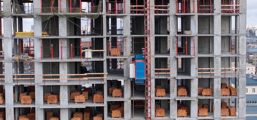 • Завершаются работы по устройству кирпичной кладки на уровне 11 этажа